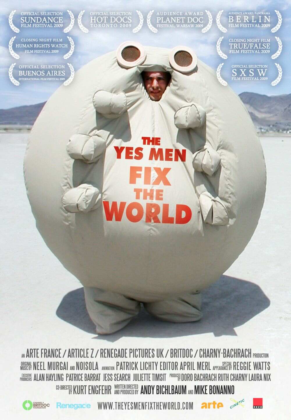 “THE YES MEN FIX THE WORLD is a screwball true story about two gonzo political activists who, posing as top executives of giant corporations, lie their way into big business conferences and pull off the world’s most outrageous pranks.
