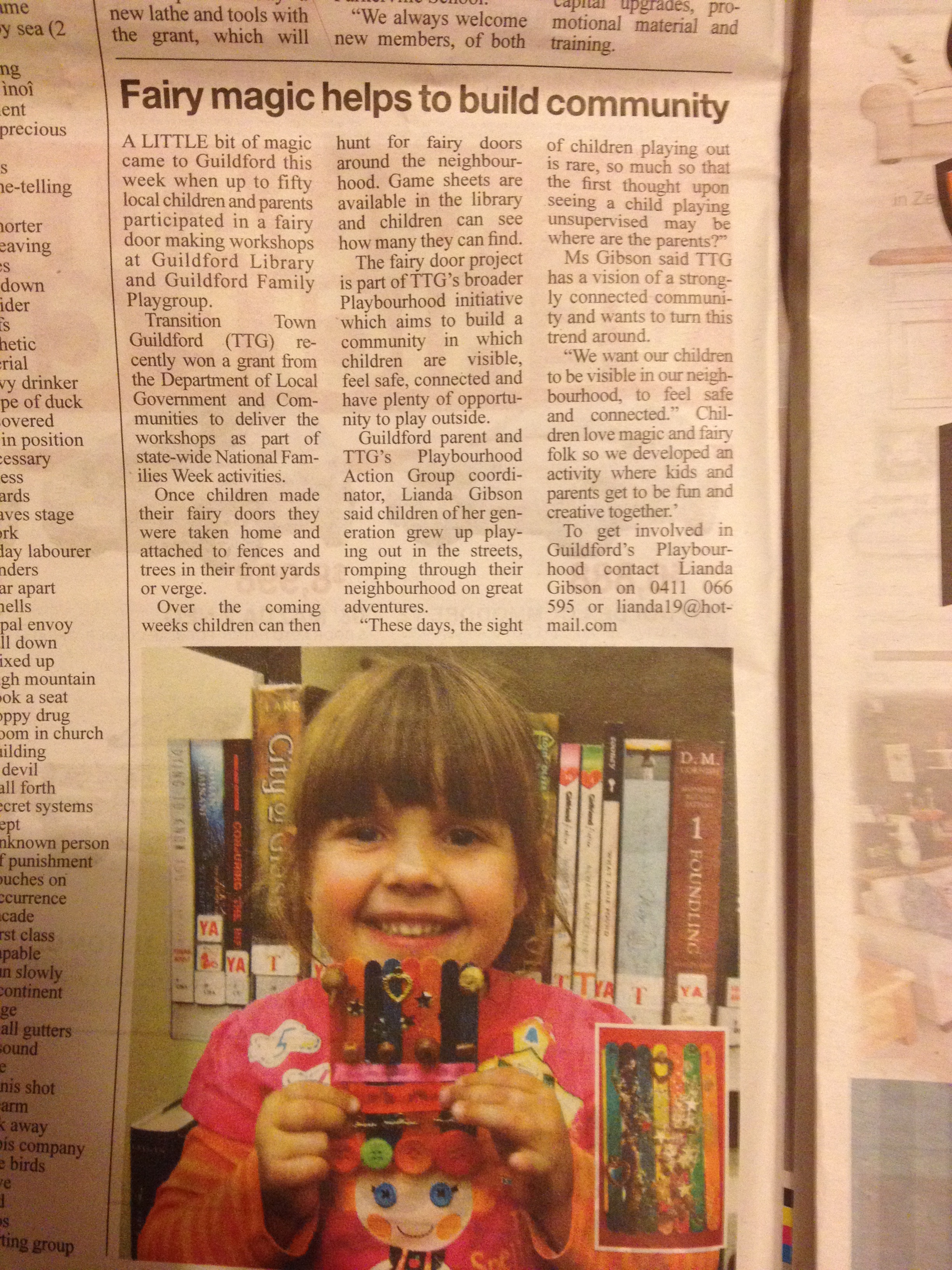 Transition Town Guildford (TTG) has won a grant to run fairy door making workshops for local children in Guildford and surrounds. The workshops will be held to celebrate National Families Week (15 to 21 May).
