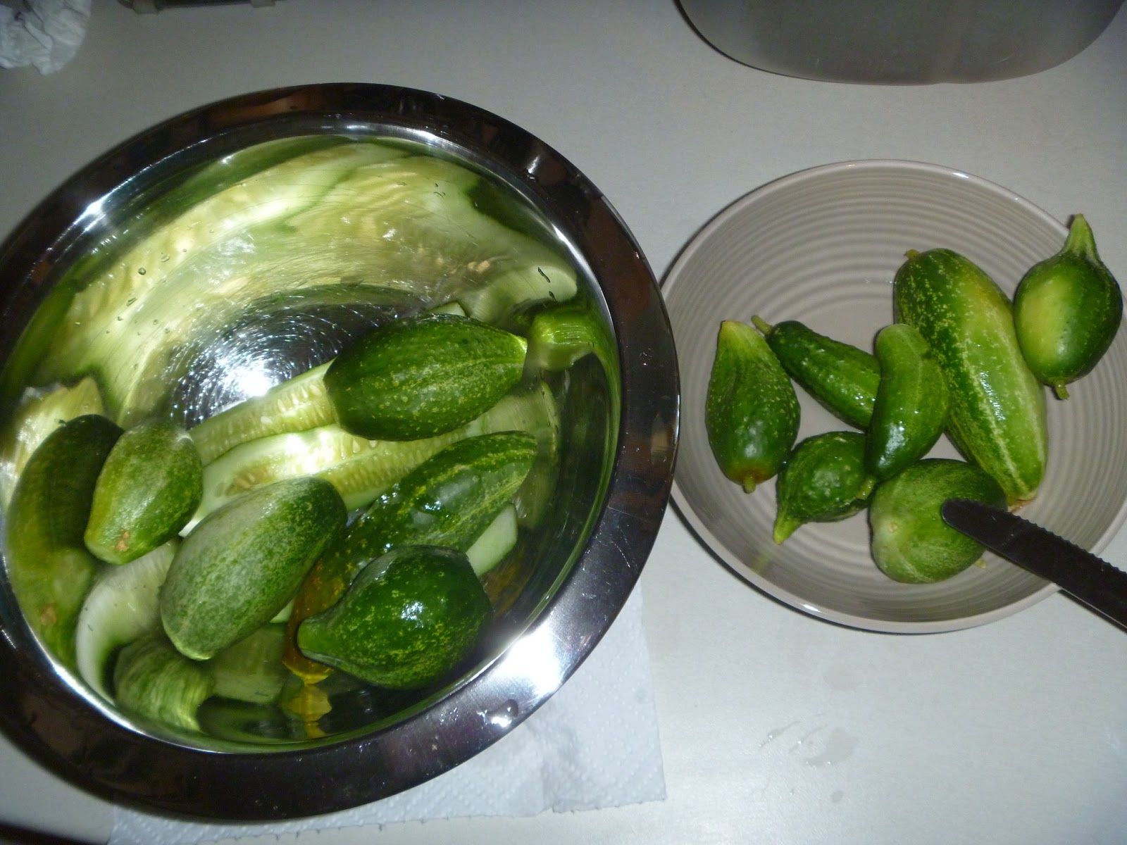 I didn’t have a huge amount of cucumbers, probably about 15 small to medium, but I didn’t want to leave them on the vine any longer as the plants themselves seemed to have died off with what looked like a while dusting of mold on the leaves while we were away, and I wanted to get some pickles out of them before they died completely. I’ll have to do some more research on what this might be, there did seem to get a lot of aphids and ants on the cucumber plants while they were growing, which I did try to deal with some organic pest control, but it didn’t seem to do a huge amount of good.