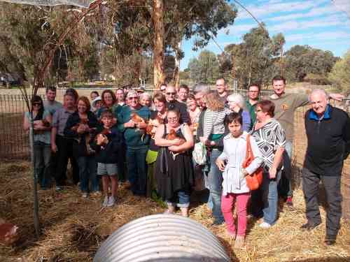 One of the most enjoyable activities that Transition Town Guildford engaged in this year was the Sunny Side Up backyard hen project. This involved 25 households from the City of Swan that had never had chickens before, but were keen to learn. The aim was to reduce household organic waste to landfill by feeding kitchen scraps to hens instead. The course was supported by the WA Waste Authority, and involved basic coursework on hen care, feeding, housing and health, as well as a field trip. With the waste reduction theme, the aim was also to build the hen houses from recycled materials. At the end of the course, participants received 3 chooks: a retired battery hen, a ‘point-of-lay’ pullet (meaning a young hen destined for commercial egg laying), and a traditional breed of hen.