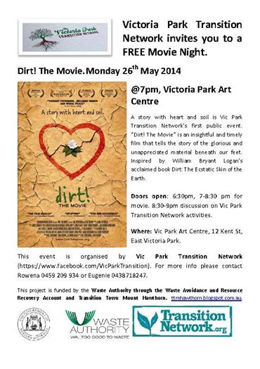 For Compost month Transition Town Guildford will be teaming up with other Transition groups around Perth to screen the movie Dirt!